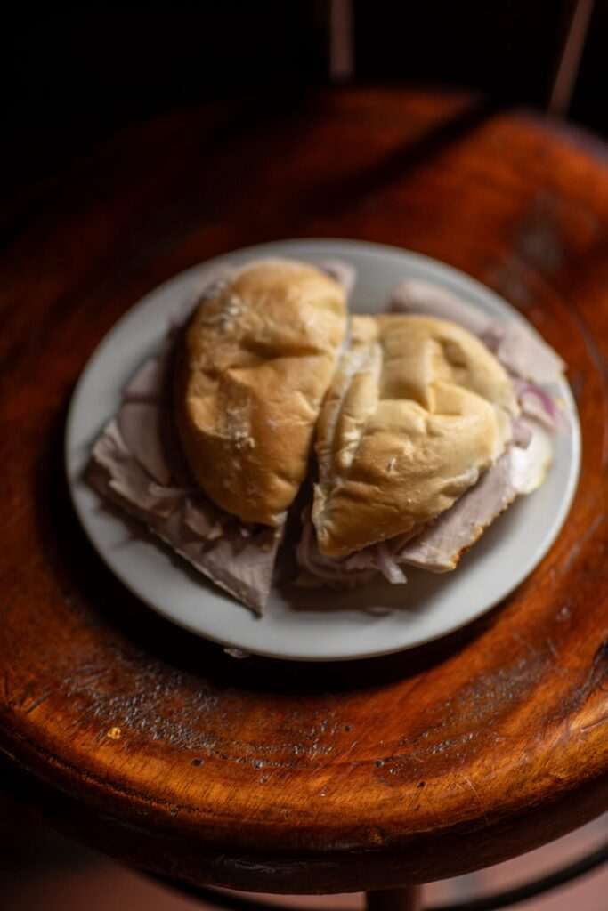 Tavernas like Juanito in Chorrillos or Barranco serve classic sanguchas like canned sardines and “patita con pan” with just-made criolla onion and peppers pickled that tastes like a ceviche salad used as freshener in any sanguché in Peru.