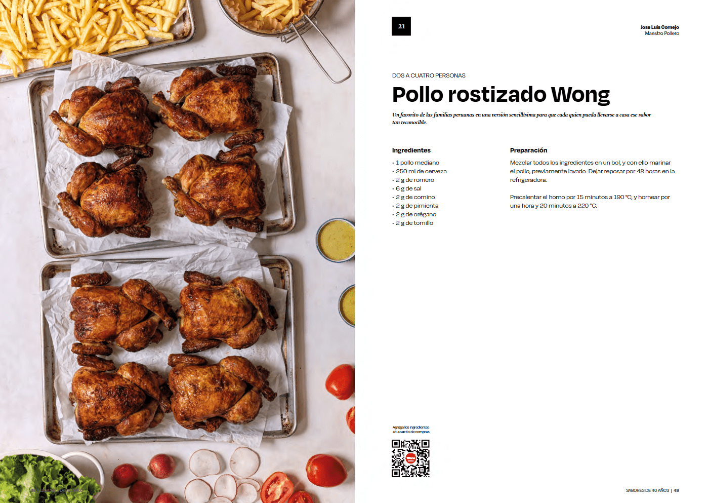 In teams of five, they developed a banquet with four different themes: barbecues, seafood, Peruvian creole, and vegetarian. They also included some of Wong’s best-kept secrets, like their karamamdukas and roasted chicken. The printed version was supervised by Cencosud and was a gift for their bigger suppliers and clients. Nice hit.